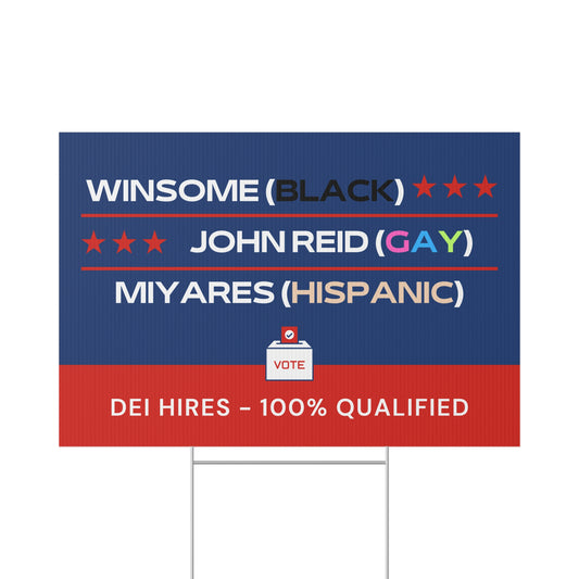 Winsome Sears, Jason Miyares & John Reid: DEI Hires? 100% Qualified! Lawn Sign