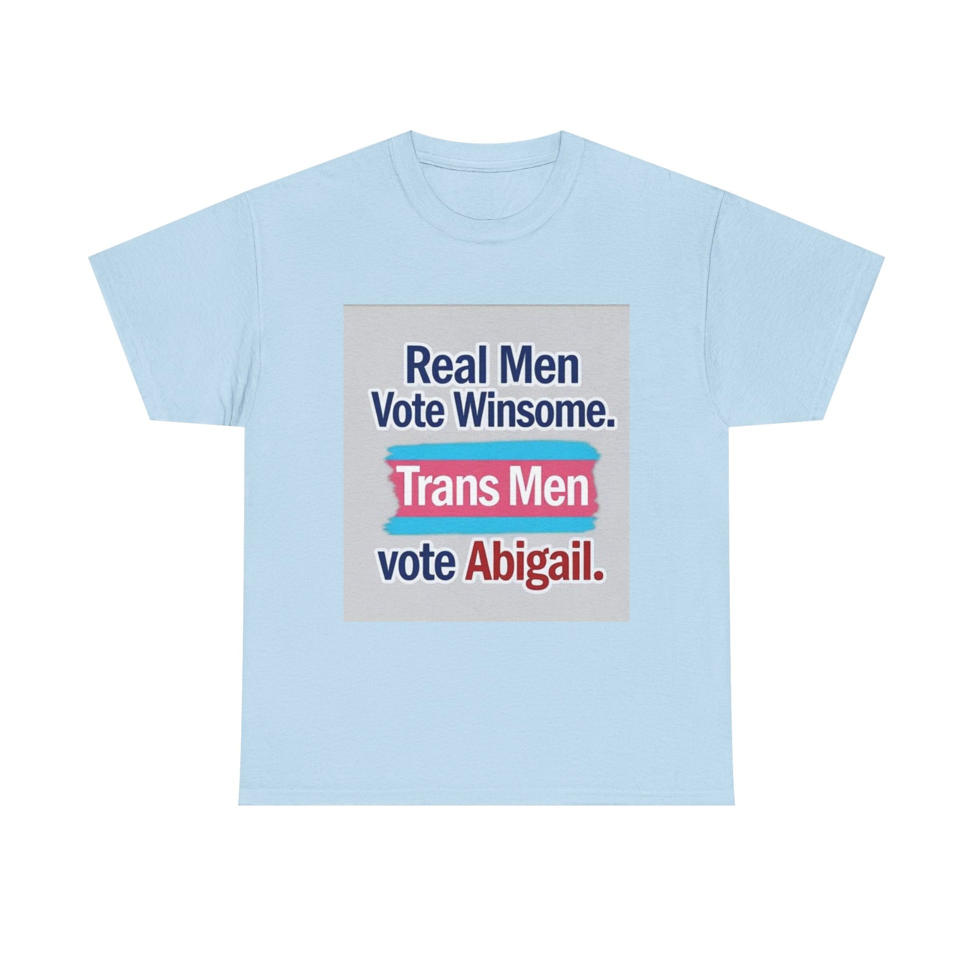 "Real Men Vote Winsome" - Bold Stand Against Trans in Women's Spaces – Unisex Heavy Tee